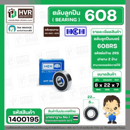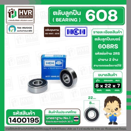 ลูกปืน 608 2RS ( HCH ) ( 8 x 22 x 7 mm. ) ( ราคา / 1 ตลับ ) #1400195