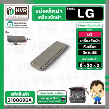 แม่เหล็กฝาเครื่องซักผ้า LG กว้าง 6 mm. x ยาว 20 mm. x หนา 2 mm. #3180696A