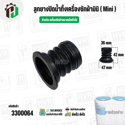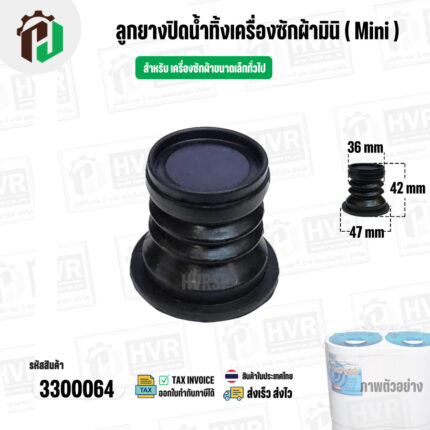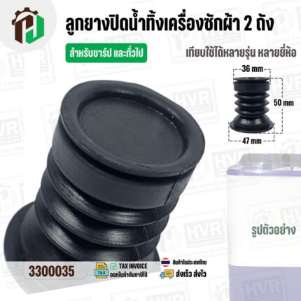 - ชุดลูกยางปิดน้ำทิ้งเครื่องซักผ้า สองถัง Panasonic ( พานาโซนิค ) , National ( ลูกยาง+แกนดึง ) ( แท้ ) #3300028X---------------------------------- >> รายละเอียดสินค้า << --------------------------------------- >> ** อะไหล่แท้ ( Original Part ) ** << >> ใช้สำหรับเป็นอะไหล่ลูกยางปิดน้ำเครื่องซักผ้า 2 ถัง >> สำหรับ ยี่ห้อ Panasonic ( พานาโซนิค ) , National ( เนชั่นแนล ) >> สำหรับ เครื่องขนาด 6.5 - 15 kg . เช่น NA-W453N,NA-W553N,NA-W653N,NA-W803T,NA-W805T,N-W806N,NA-W800E ,NA-W950N,NA-951N,NA-W952N,NA-W1051T,NA-W1052N,NA-1150N,NA-W1200E NA-W1201N,NA-W1202N,NA-W1203N,NA-W1300N,NA-W1301T,NA-W1302T,NA-W1303T,NA-W1300E NA-W1401W,NA-W1400E,NA-W1500E,NA-W1500T >> ในชุดประกอบไปด้วย 2 ชิ้น : ลูกยางปิดน้ำ + แกนดึงลูกยาง ขนาดสินค้า >> ขอบด้านบน 45 mm. >> ขอบลำตัว 36 mm. >> ขอบด้านล่าง 64 mm. >> ความสูงลูกยาง 56 mm. >> แก้ปัญหาปิดน้ำไม่อยู่ น้ำรั่วลงท่อน้ำทิ้ง