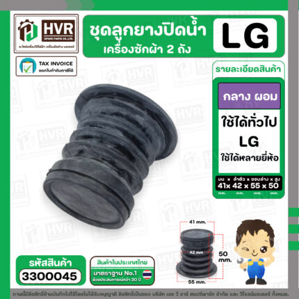 ลูกยางปิดน้ำเครื่องซักผ้า 2 ถัง LG ( กลาง ) , เทียบใช้ทั่วไป หลายยี่ห้อ ( 41 x 42 x 55 x สูง 50 mm. )