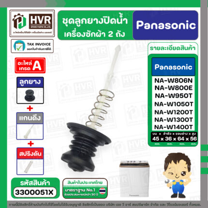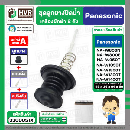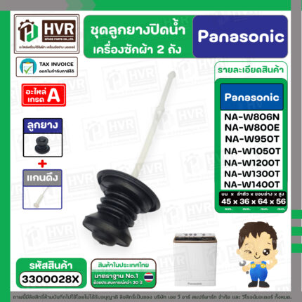 • ชุดลูกยางปิดน้ำทิ้งเครื่องซักผ้า สองถัง Panasonic ( พานาโซนิค ) , National ( ลูกยาง+แกนดึง ) ( แท้ ) #3300028X---------------------------------- >> รายละเอียดสินค้า << --------------------------------------- >> ** อะไหล่แท้ ( Original Part ) ** << >> ใช้สำหรับเป็นอะไหล่ลูกยางปิดน้ำเครื่องซักผ้า 2 ถัง >> สำหรับ ยี่ห้อ Panasonic ( พานาโซนิค ) , National ( เนชั่นแนล ) >> สำหรับ เครื่องขนาด 6.5 - 15 kg . เช่น NA-W453N,NA-W553N,NA-W653N,NA-W803T,NA-W805T,N-W806N,NA-W800E ,NA-W950N,NA-951N,NA-W952N,NA-W1051T,NA-W1052N,NA-1150N,NA-W1200E NA-W1201N,NA-W1202N,NA-W1203N,NA-W1300N,NA-W1301T,NA-W1302T,NA-W1303T,NA-W1300E NA-W1401W,NA-W1400E,NA-W1500E,NA-W1500T >> ในชุดประกอบไปด้วย 2 ชิ้น : ลูกยางปิดน้ำ + แกนดึงลูกยาง ขนาดสินค้า >> ขอบด้านบน 45 mm. >> ขอบลำตัว 36 mm. >> ขอบด้านล่าง 64 mm. >> ความสูงลูกยาง 56 mm. >> แก้ปัญหาปิดน้ำไม่อยู่ น้ำรั่วลงท่อน้ำทิ้ง