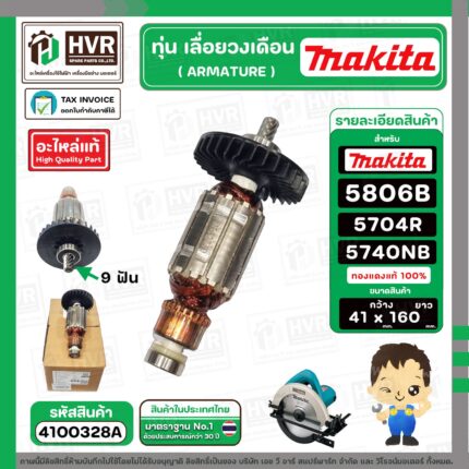ทุ่นเลื่อยวงเดือน MAKITA รุ่น 5806B ,5740NB , 5704R ( พร้อมลูกปืนหน้า/หลัง ) ( ทองแดง 100% ) ( 9 ฟัน )