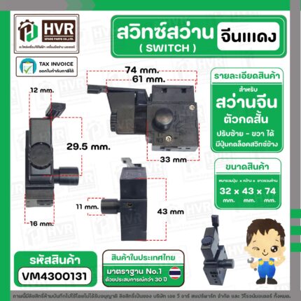 สวิทซ์สว่านจีนทั่วไป ( หน้าสั้น ) ( มีปุ่มล็อคสวิทซ์ ) #VM4300131
