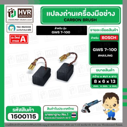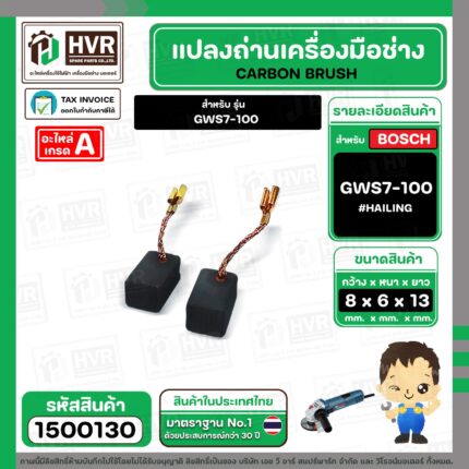 แปรงถ่าน สำหรับ BOSCH GWS 7-100 ( HAILING ) ( 6.5 x 8 x 13 mm. )(ราคา / 1 ชุด)