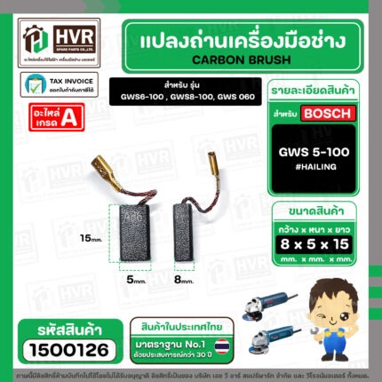 แปรงถ่าน สำหรับ BOSCH GWS 5-100, 6-100, 8-100, GWS 060 , 750-100 ( HAILING ) ( 5 x 8 x 15 mm.) (ราคา / 1 ชุด) #1500126