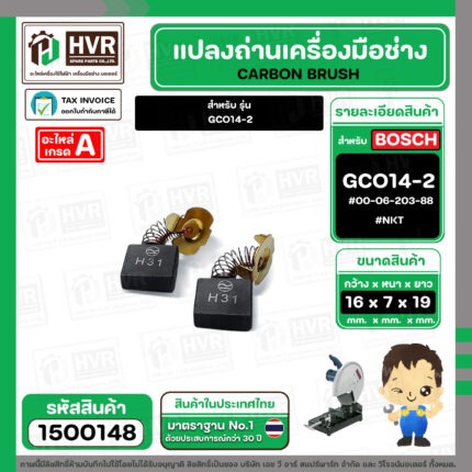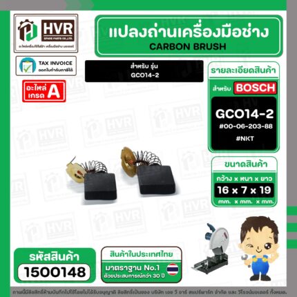แปรงถ่าน สำหรับ BOSCH GCO14-2 ( NKT) ( 7 x19 x 16 mm. ) #00-06-203-88 (ราคา / 1 ชุด) #1500148