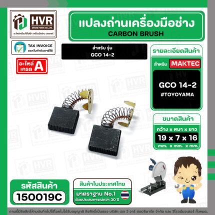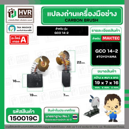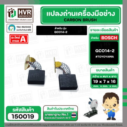 แปรงถ่าน สำหรับ BOSCH GCO14-2 ( TOYOYAMA ) ( เขียว ) ( 7 x19 x 16 mm. ) #00-06-203 (ราคา / 1 ชุด) #150019