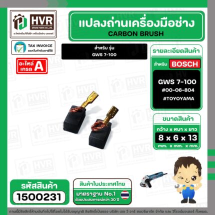 แปรงถ่าน สำหรับ BOSCH GWS 7-100 ( TOYOYAMA ) ( 6.5 x 8 x 13 mm. ) #00-06-804 (ราคา / 1 ชุด) #1500231