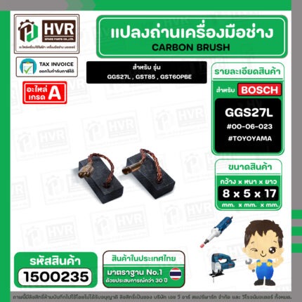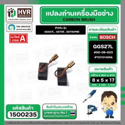 แปรงถ่าน สำหรับ BOSCH GGS27L , GST85 , GST60PBE (TOYOYAMA ) ( 5 x 8 x 17 ) #00-06-023 (ราคา / 1 ชุด) #1500235