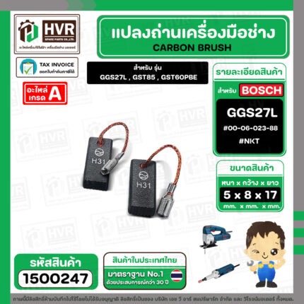 แปรงถ่าน สำหรับ BOSCH GGS27L , GST85 , GST60PBE ( NKT ) ( 5 x 8 x 17 ) #00-06-023-88 (ราคา / 1 ชุด)