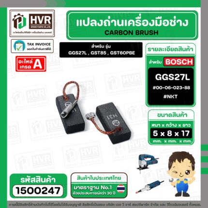แปรงถ่าน สำหรับ BOSCH GGS27L , GST85 , GST60PBE ( NKT ) ( 5 x 8 x 17 ) #00-06-023-88 (ราคา / 1 ชุด) #1500247
