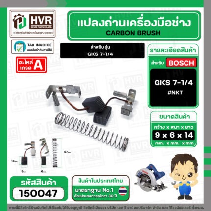 แปรงถ่าน สำหรับ BOSCH GKS 7-1/4 ( NKT ) ( 6.4 x 9.5 x 13.5 mm. ) #B-141 (ราคา / 1 ชุด) #150047