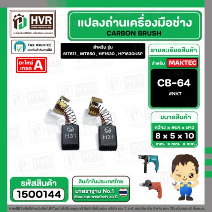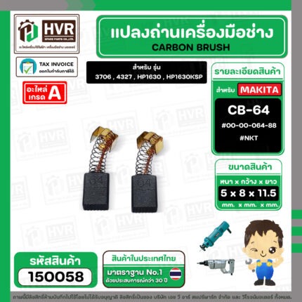 แปรงถ่าน สำหรับ MAKITA CB-64 ( NKT) ( 5 x 8 x 11.5 mm. ) #00-00-064-88 (ราคา / 1 ชุด) #150058