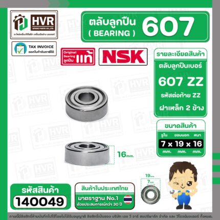 ตลับลูกปืน ( bearing ) 607 ZZ( ฝาเหล็ก ) ยี่ห้อ NSK คุณภาพดี มาตราฐาน JAPAN ( 7 x 19 x 6 mm. ) ( ราคา / 1 ตลับ ) #140049
