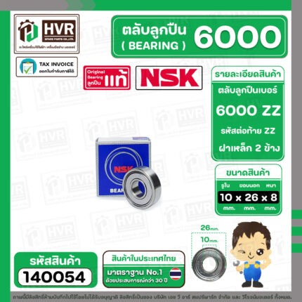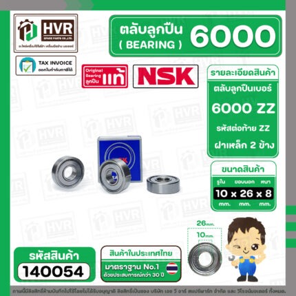 ตลับลูกปืน ( bearing ) 6000 ZZ ( ฝาเหล็ก ) ยี่ห้อ NSK คุณภาพดี มาตราฐาน JAPAN ( 10 x 26 x 8 MM ) ( ราคา / 1 ตลับ ) #140054