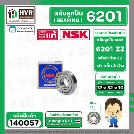 ตลับลูกปืน ( bearing ) 6201 ZZ ( ฝาเหล็ก ) ยี่ห้อ NSK คุณภาพดี มาตราฐาน JAPAN ( 12 x 32 x 10 mm. )( ราคา / 1 ตลับ ) #140057