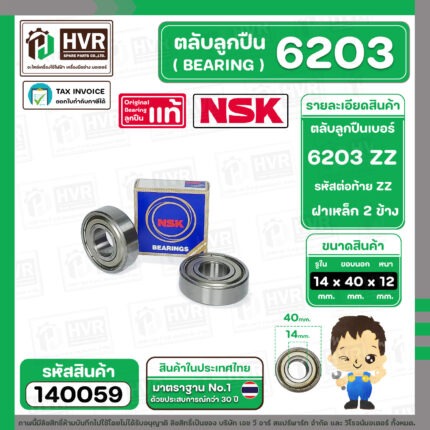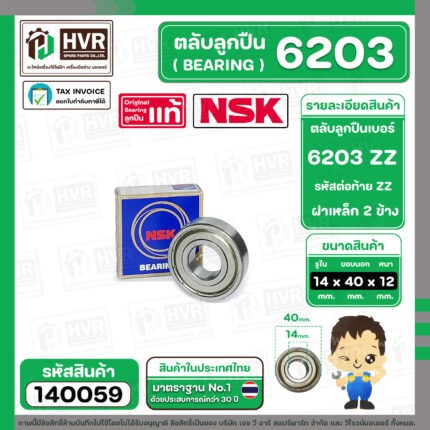 ตลับลูกปืน ( bearing ) 6203 ZZ ( ฝาเหล็ก ) ยี่ห้อ NSK คุณภาพดี มาตราฐาน JAPAN ( 14 x 40 x 12 mm. )( ราคา / 1 ตลับ ) #140059