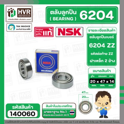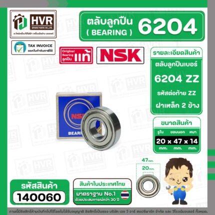 ตลับลูกปืน ( bearing ) 6204 ZZ( ฝาเหล็ก ) ยี่ห้อ NSK คุณภาพดี มาตราฐาน JAPAN ( 20 x 47 x 14 mm. ) ( ราคา / 1 ตลับ ) #140060