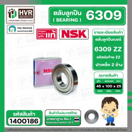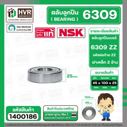 ลูกปืน 6309 ZZ ( NSK ) ( 45 x 100 x 25 mm.) ( ราคา / 1 ตลับ ) #1400186