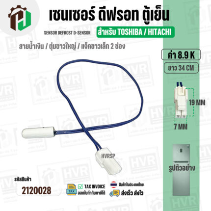 เซนเซอร์ตู้เย็น TOSHIBA / HITACHI 8.9 k ( สายน้ำเงิน / ตุ่มขาวใหญ่ / แจ็คขาวเล็ก 2 ช่อง ) ( ยาว 34 cm. ) #2120028