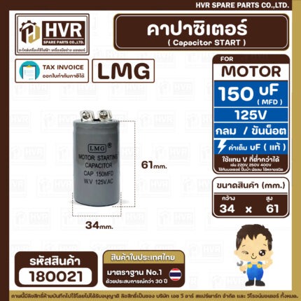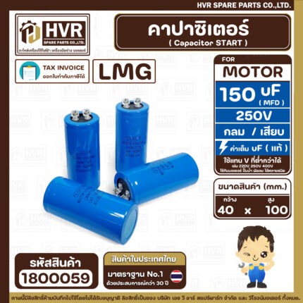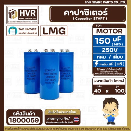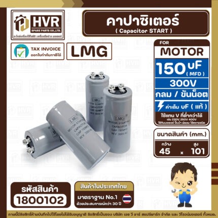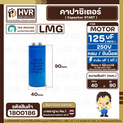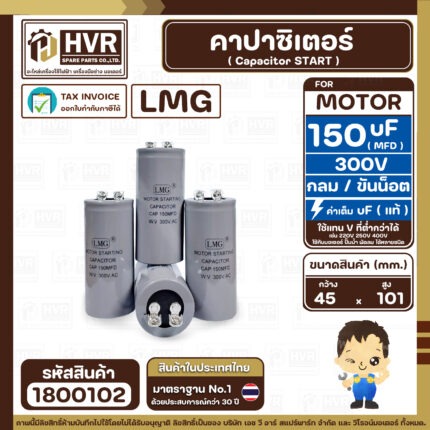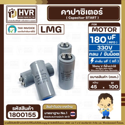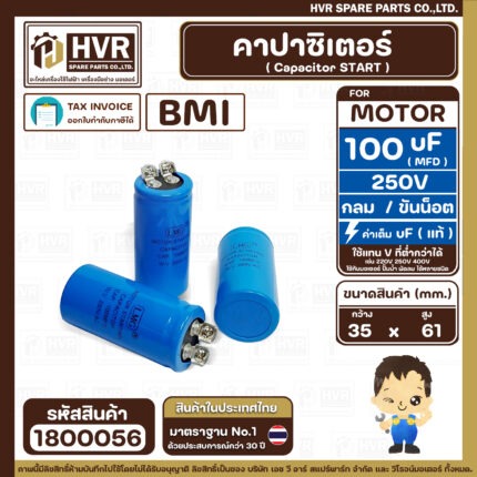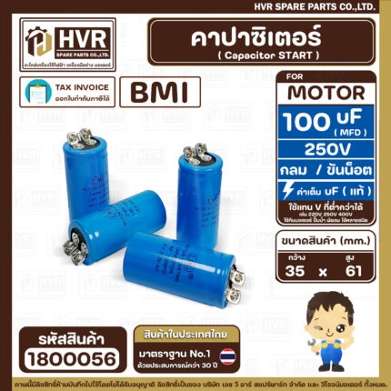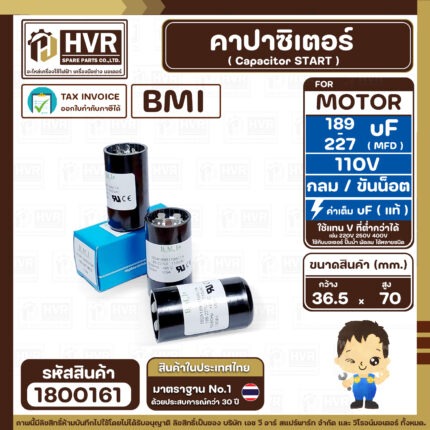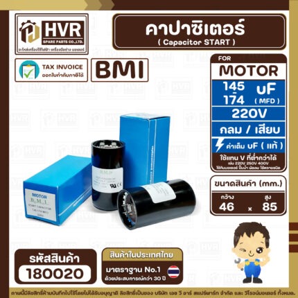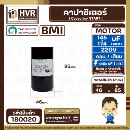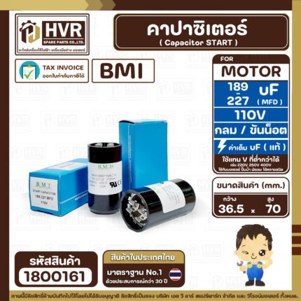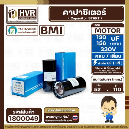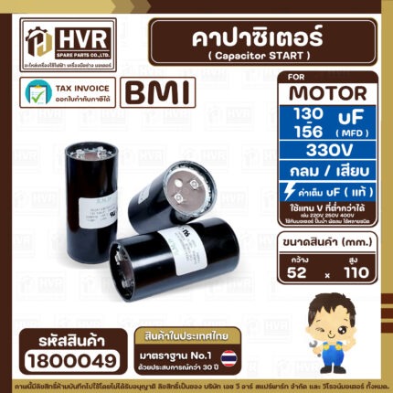 คาปาซิเตอร์ ( Cap Start ) 130 uF – 156 uF 330V ( กลม เสียบ ) ( BMI ) ( 1 ตัว ) #1800049