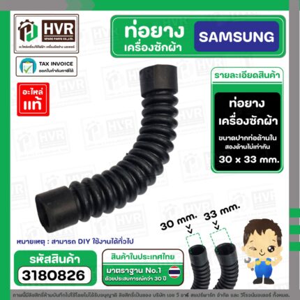 ท่อยางดำ ท่อน้ำล้น เครื่องซักผ้า SAMSUNG ( ปากด้านใน 30 x 33 mm. ยาว 22 cm. ) ( แท้ )(ราคา/ 1 เส้น) #3180826