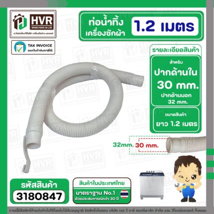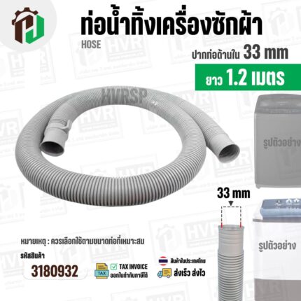 ท่อน้ำทิ้งเครื่องซักผ้าสองถังและถังเดี่ยวอัตโนมัติ ปากท่อด้านใน 3.3 cm. ยาว 1.2 เมตร ไซส์มาตราฐานเครื่องซักผ้าทั่วไป #3180932