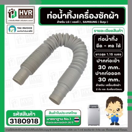 ท่อน้ำทิ้ง เครื่องซักผ้า LG , SAMSUNG ( แท้ ) ยืด-หด 0.3 เมตร ยาวสุด 1.15 เมตร ปากท่อเข้า 30 mm. ( เทา ตรง ) #3180918