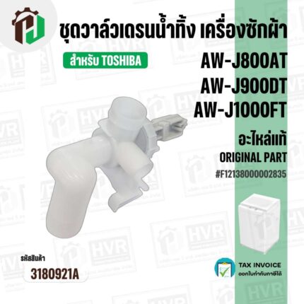 ชุดวาล์วเดรนน้ำทิ้ง เครื่องซักผ้า TOSHIBA AW-J800AT / AW-J900DT / AW-J1000FT ( แท้ ) #F12138000002835 #3180921A