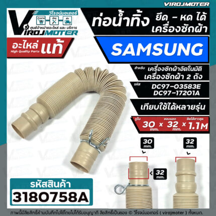 ท่อน้ำทิ้งเครื่องซักผ้า SAMSUNG ( ซัมซุง ) HOSE DRAIN SAMSUNG #DC97-17201A ( อะไหล่แท้ ) ปากในสวม 30 mm. ยืด – หดได้ (ราคา/ 1 เส้น) #3180758A