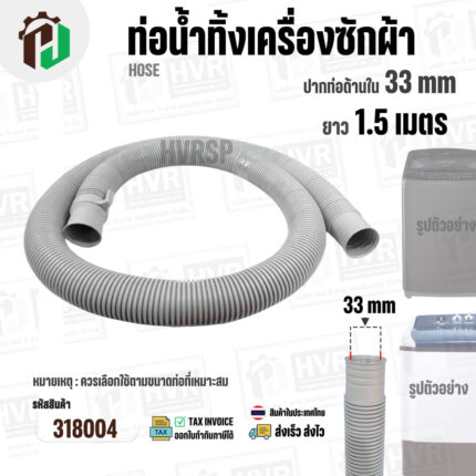 ท่อน้ำทิ้งเครื่องซักผ้าสองถังและถังเดี่ยวอัตโนมัติ ปากท่อด้านใน 3.3 cm. ยาว 1.5 เมตร ไซส์มาตราฐานเครื่องซักผ้าทั่วไป #318004