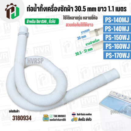 ท่อน้ำทิ้งเครื่องซักผ้า HITACHI ( ฮิตาชิ ) PS-140MJ , PS-150WJ , PS-160WJ , PS-170WJ ( ปากท่อ 30.5-31 mm ยาว 1.1 เมตร ) #3180934