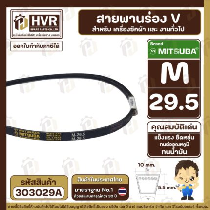 สายพาน M-29.5 ร่อง V (V BELT ) ยี่ห้อ MITSUBA ( มิตซูบา ) ( ทนน้ำมัน แข็งแรง ยืดหยุ่นดี ) #303029A