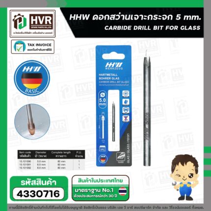ดอกสว่านเจาะกระจก 5 mm.( แกนกลม ) ( HHW ) #10.101090 #4330716