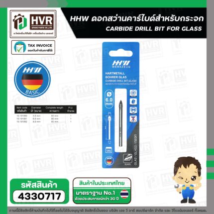 ดอกสว่านเจาะกระจก 6 mm.( แกนกลม ) ( HHW ) #10.101091 #4330717