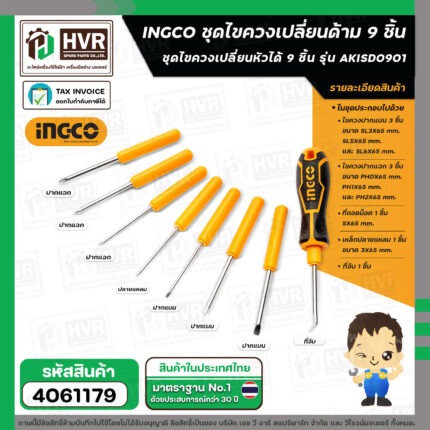 ชุดไขควงเปลี่ยนด้าม 9 ชิ้น ( INGCO ) #AKISD0901 #4061179