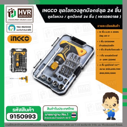 ชุดไขควงลูกบล๊อค 24 ชิ้น / ชุด ( INGCO ) NO.HKSDB0188 #9150993