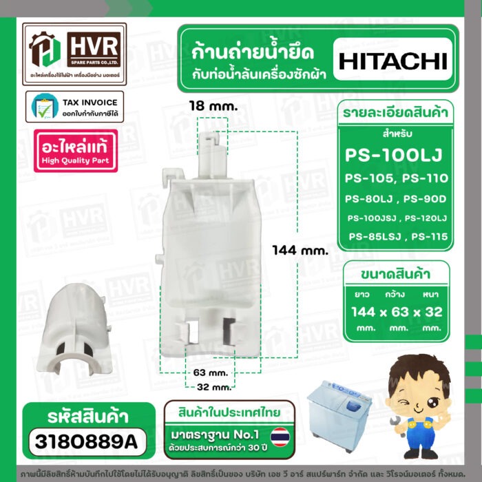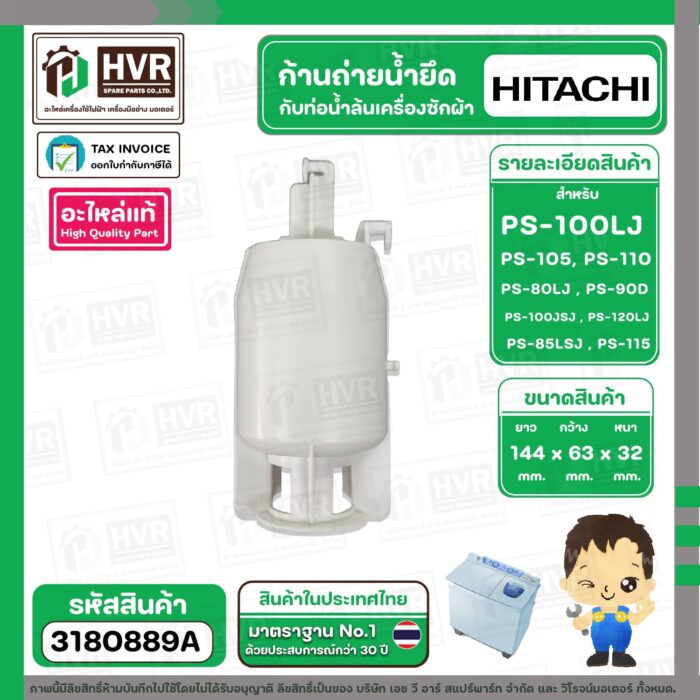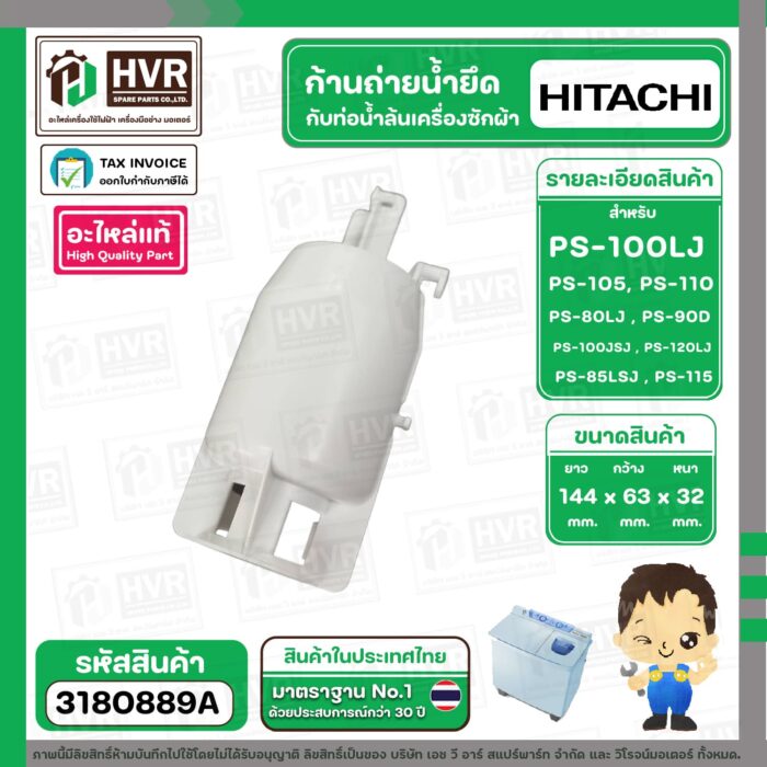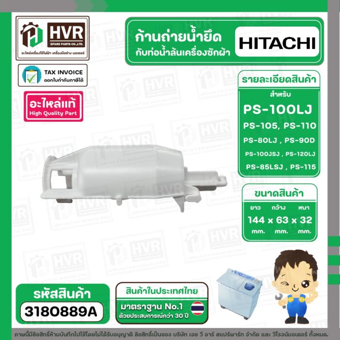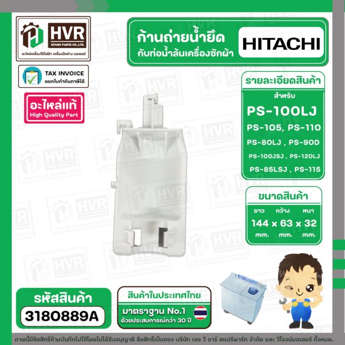 ก้านถ่ายน้ำยึดกับท่อน้ำล้น ( VALVE ACTUATER ) HITACHI PS-100 , PS-105 , PS-110 , PS-80LJ , PS-90DS #PTPS-990KJ*010 ( แท้ ) #3180889A