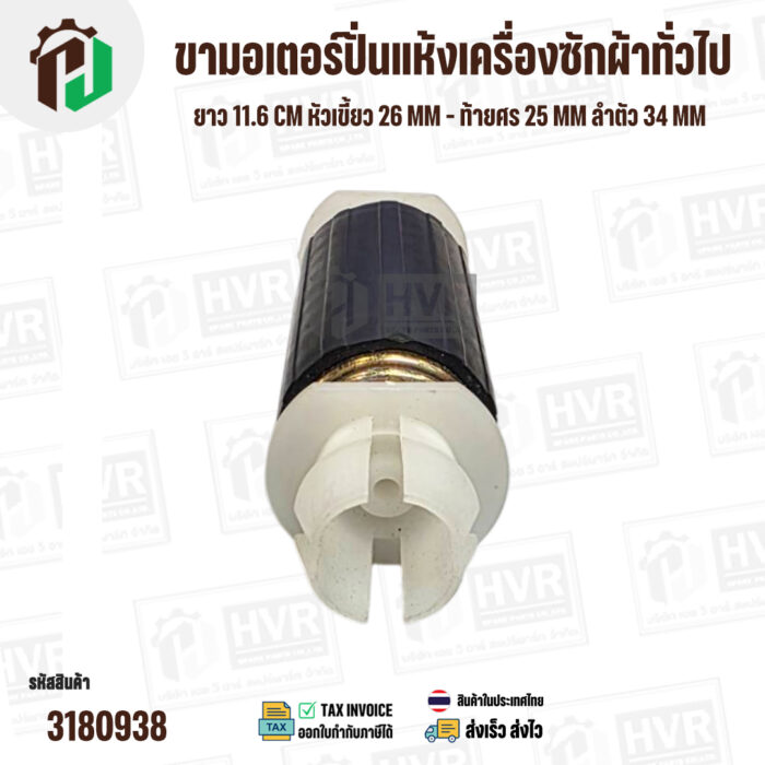 ขามอเตอร์ปั่นแห้งเครื่องซักผ้าทั่วไป ยาว 11.6 cm หัวเขี้ยว 26 mm – ท้ายศร 25 mm ลำตัว 34 mm ( สีดำ ) ( 1 อัน ) #3180938