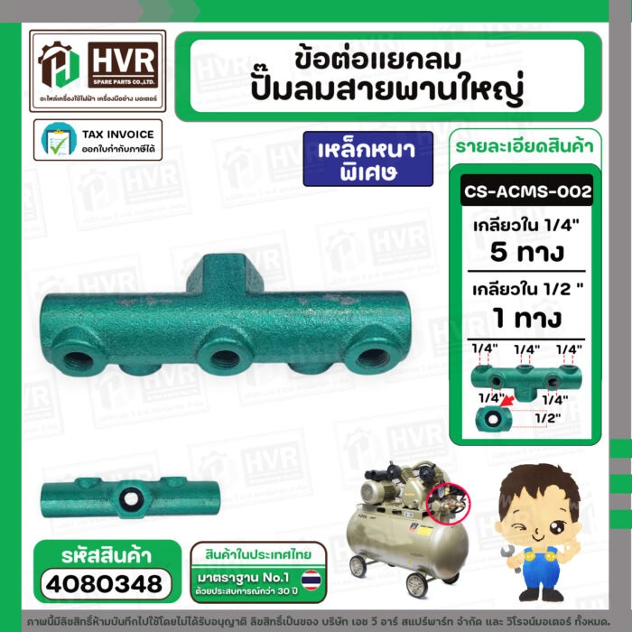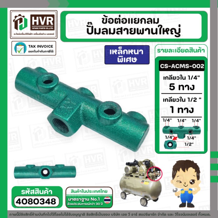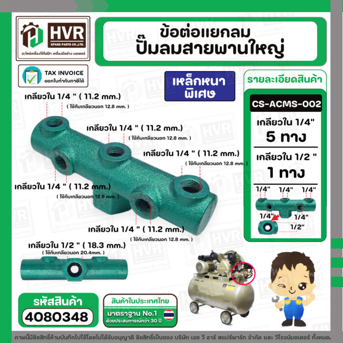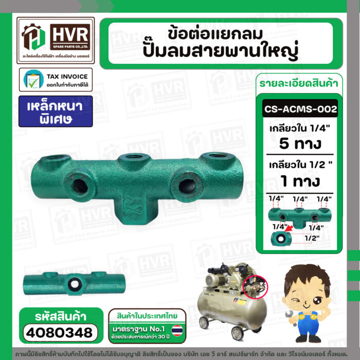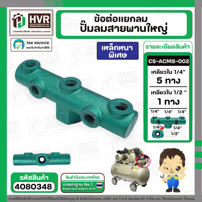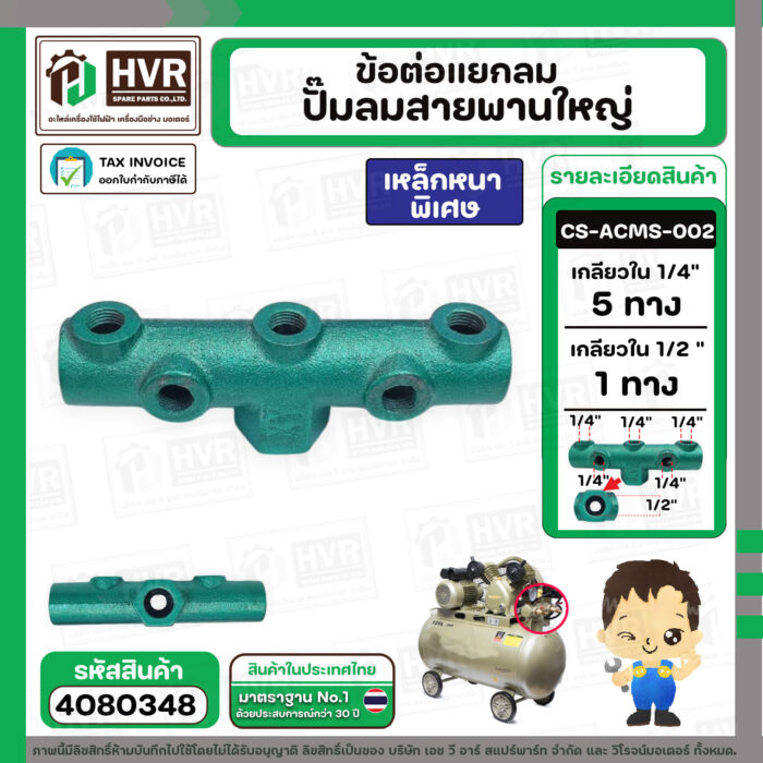 ข้อต่อแยกลม ปั้มลม สายพานใหญ่ ** เหล็กหนา อย่างหนา ** ( รูแยกใช้งาน 5 ทางเกลียว 1/4″ รูลงถัง 1/2″ ) #4080348