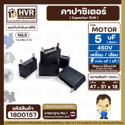>> กำลังไฟ 450V ( หมายเหตุ : ใช้แทนค่าที่โวลต์ (V) ต่ำกว่าได้ เช่น 200V / 220V / 300V / 400V เป็นต้น โวลยิ่งมากหมายถึงสามารถต้านทานกระแสไฟได้มาก ยิ่งมากยิ่งดี