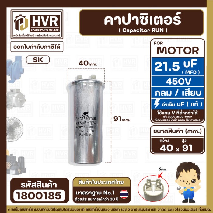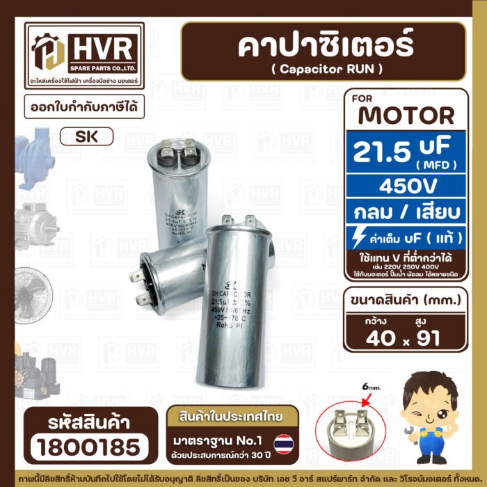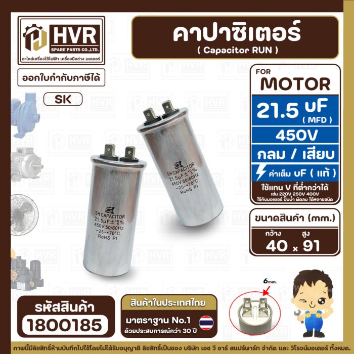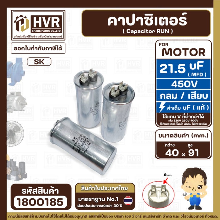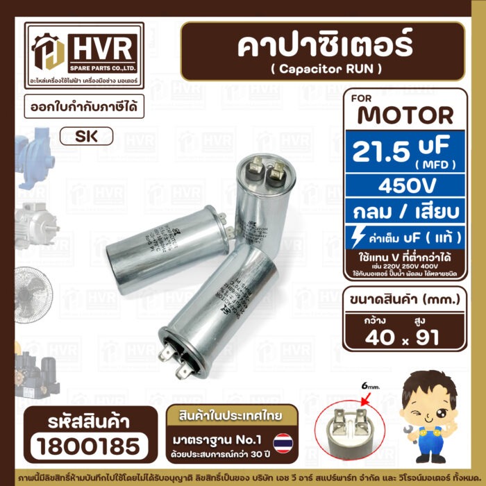 #คาปาซิเตอร์ปั๊มน้ำ21.5uF450V #คาปาซิเตอร์ปพัดลม21.5uf450V