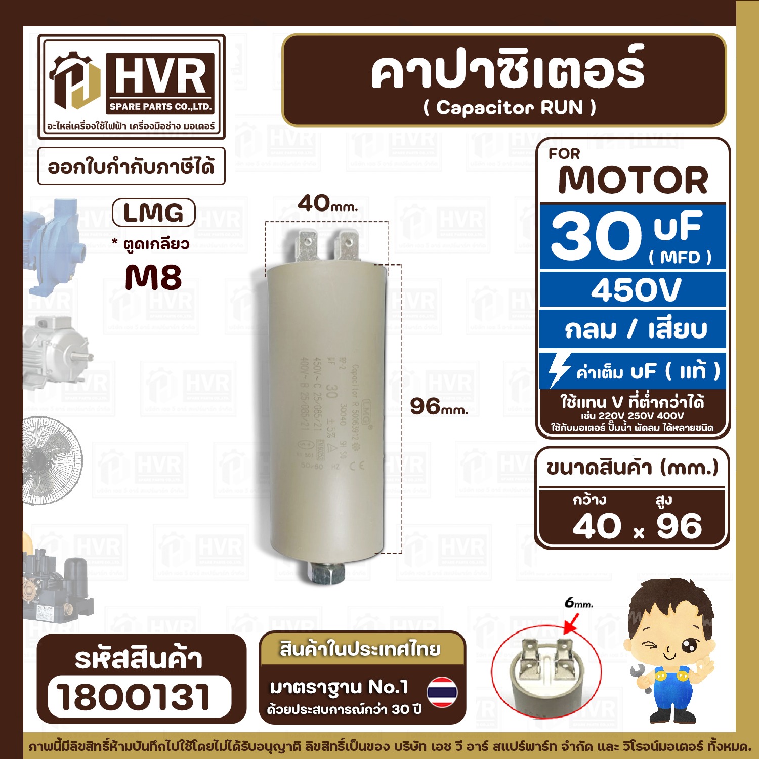 คาปาซิเตอร์ ( Cap Run ) 30 uF 450V ( ตูดเกลียว M8 กลม แบบเสียบ ) ( LMG ) ( 40 x 96 mm. )