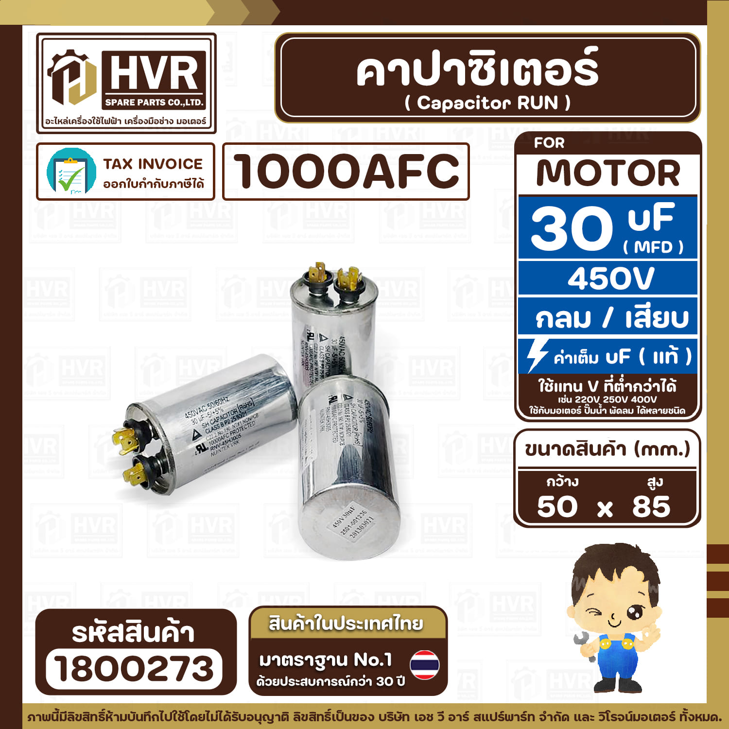 มาเป็นคนแรกที่วิจารณ์ “คาปาซิเตอร์ ( Cap Run ) 30 uF 450V ( อลูมิเนียม ) ( กลม เสียบ ) ( 1000AFC ) ( 50 x 85 mm.) ( 1 ตัว ) #1800273” ยกเลิกการตอบ
