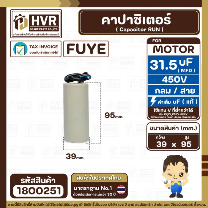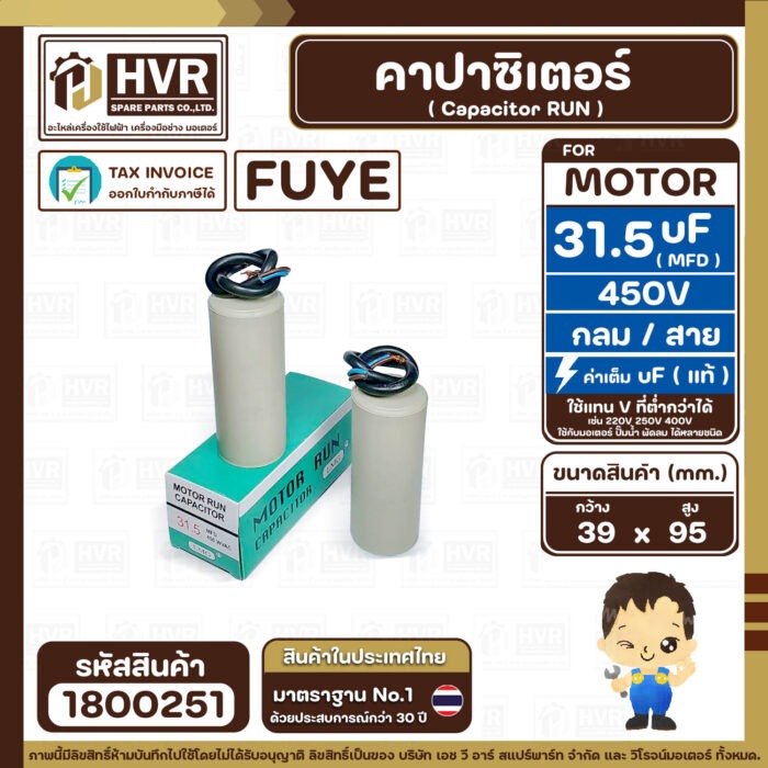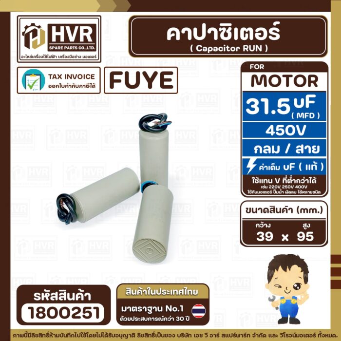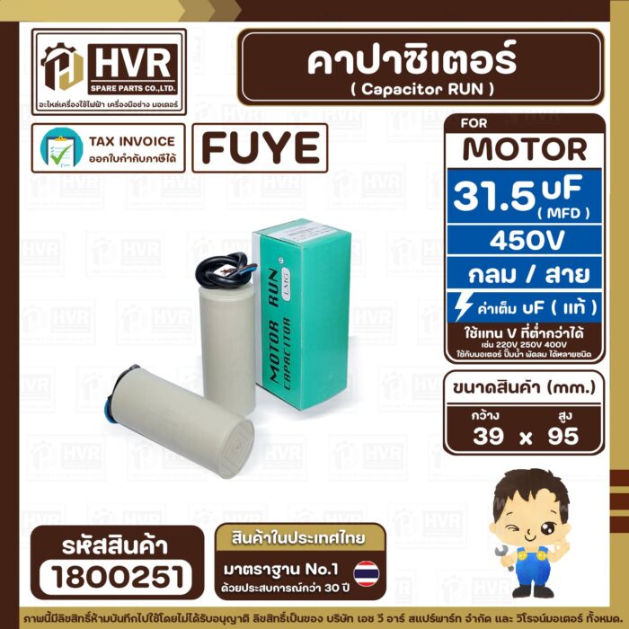 >> ขนาด 31.5 uF หรือ 31.5 MFD (ไมโครฟารัด) คือ ค่าเดียวกัน