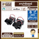 คาปาซิเตอร์ ( Cap Run ) 6 uF 450V ( เหลี่ยม สาย ) ( SHIZUKI ) ( แท้ ) ( 30 x 58 x 20 mm.) #1800216
