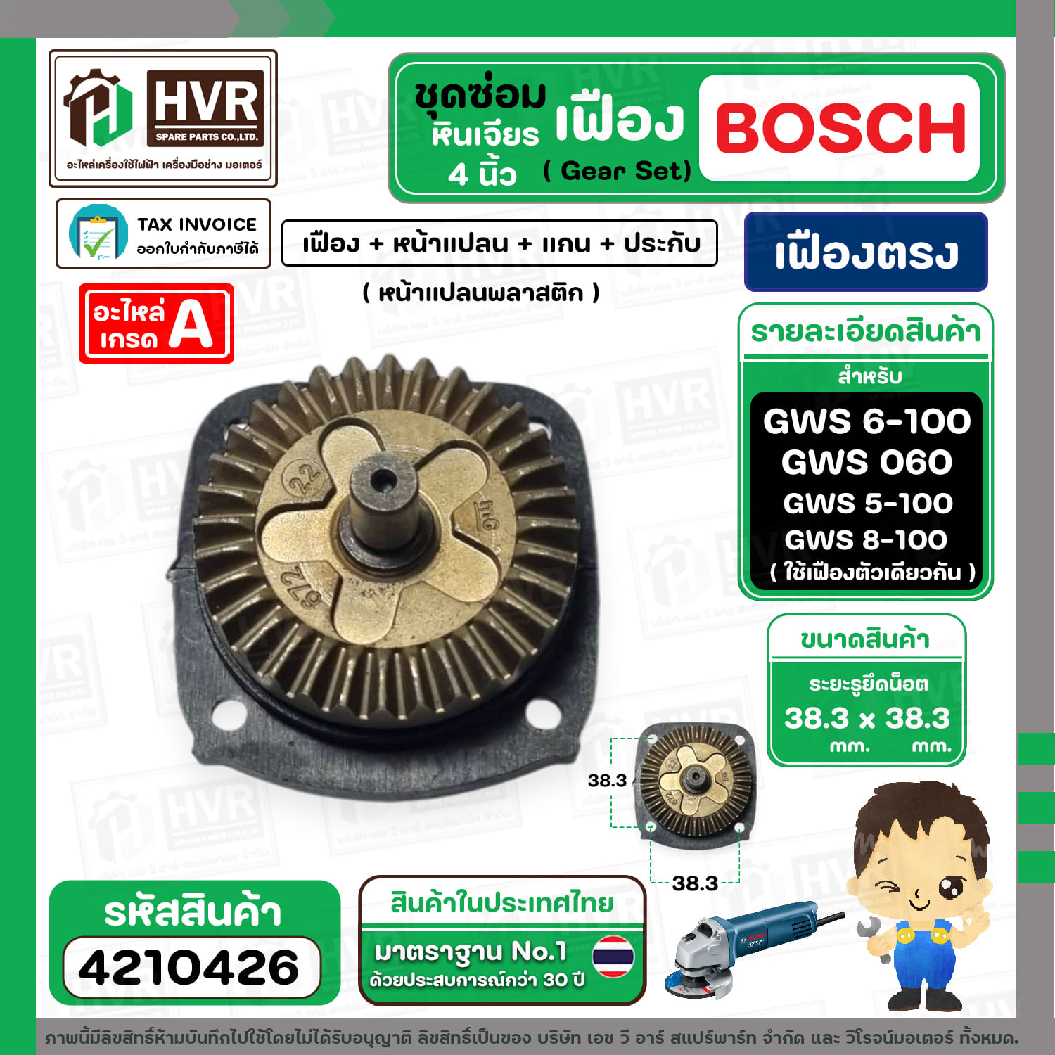 ชุดซ่อมเฟืองหินเจียร BOSCH GWS 6-100 , GWS 5-100 , GWS 8-100 ( Set เฟือง + หน้าแปลน +แกน+ประกับ ) ( เฟืองตรง ) #4210426