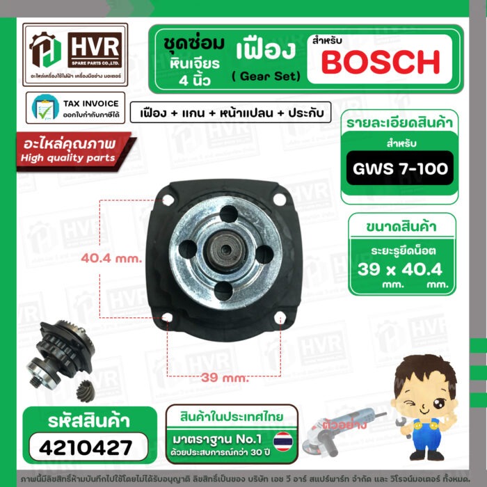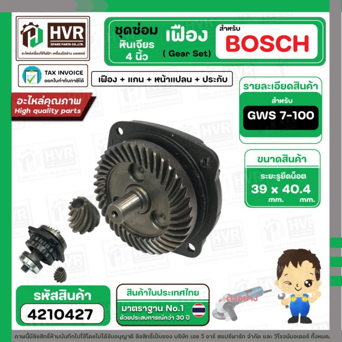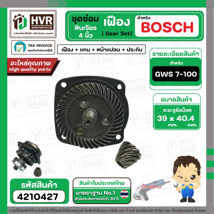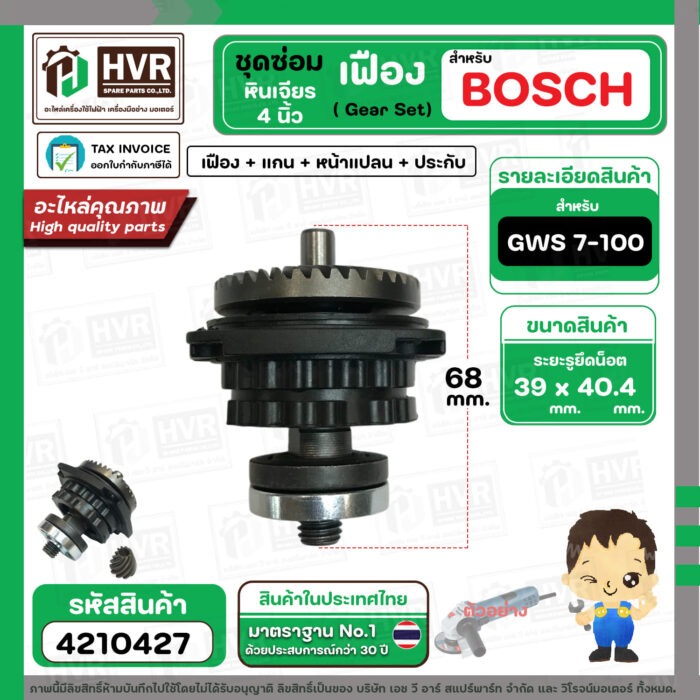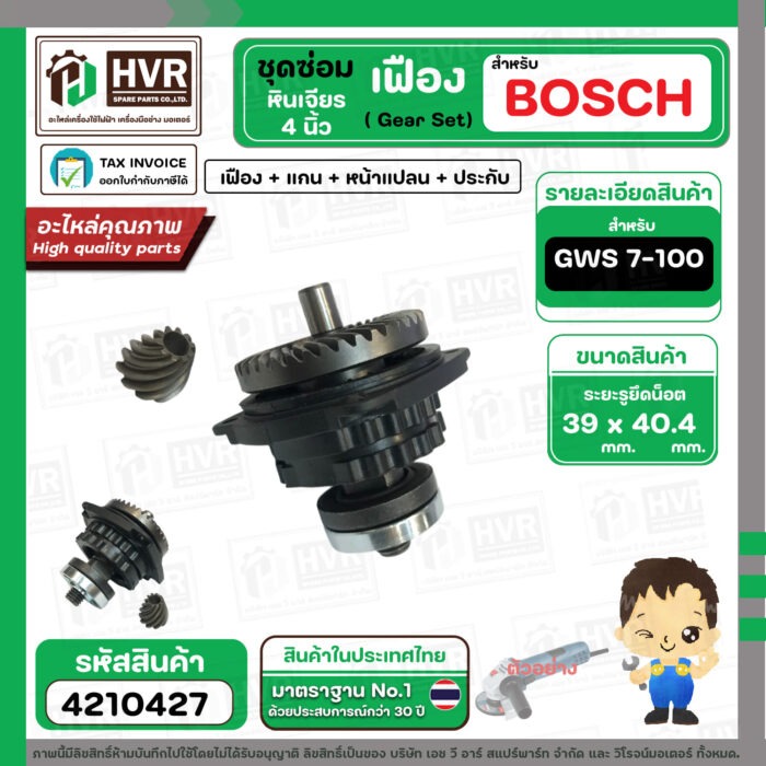 ชุดซ่อมเฟืองหินเจียร BOSCH GWS 7-100 ( เฟือง + หน้าแปลน + แกน + ประกับ )