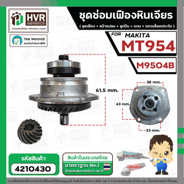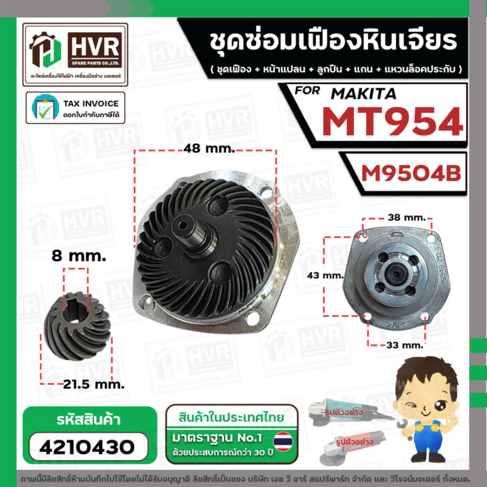ชุดซ่อมเฟืองหินเจียร Maktec MT954 / Makita M9504 ( ชุดเฟือง + หน้าแปลน +แกน+ประกับ ) #4210430