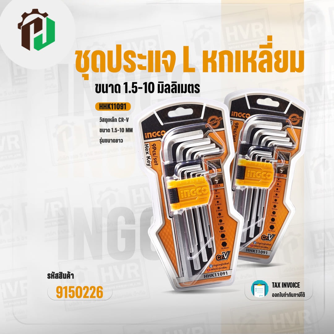 ชุดประแจ L หกเหลี่ยม ( INGCO ) ( 9 ชิ้น ) ( HHK11091 ) #9150226